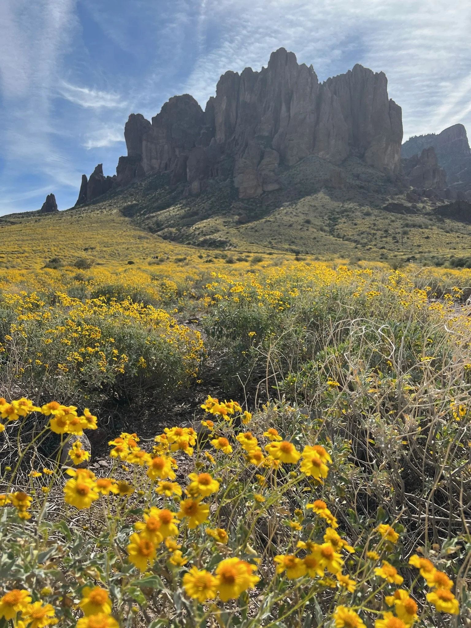 Flatiron in the Superstition Mountains of Arizona (full trail name is Flatiron via Siphon Draw) is an iconic Arizona hike and a rite of passsage for any serious Arizona hiker. It is often both loved and hated. The entire trail is only around 5.5 miles (8.85 km) and involves roughly 2,628 ft (or 798 meters) of elevation gain. What the trail lacks in distance, it makes up for in scrambling, sometimes confusion and often pain. We love this hike.